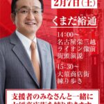 2026年2月7日 / 最終更新日時 : 2026年2月7日 anagoya_wp2 活動予定 / 報告 くまだ裕通 へのご支援を 最後のお願いです くまだ裕通 へのご支援の輪をお拡げいただきたく、最終日も頑張りますっ!