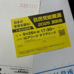 2025年9月27日 / 最終更新日時 : 2025年12月3日 anagoya_wp2 活動予定 / 報告 自由民主党総裁選挙演説会 IGアリーナで開催された「自由民主党総裁選挙演説会」。 着座後、周りの方から「とにかく自民党が頑張らなイカン!」と激励が。 期待に応えられる自民党へ! 変われ自民党! https://www.jimin.jp/sousa […]