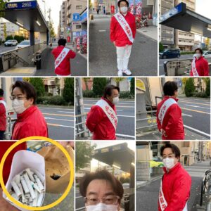 さて、写真の黄色い丸が、今朝の上飯田駅③出入口のタバコの吸い殻です。