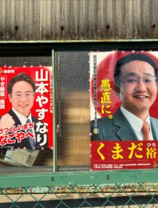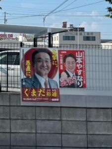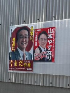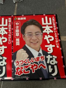 「山本やすなり」のポスターを貼り始めました。