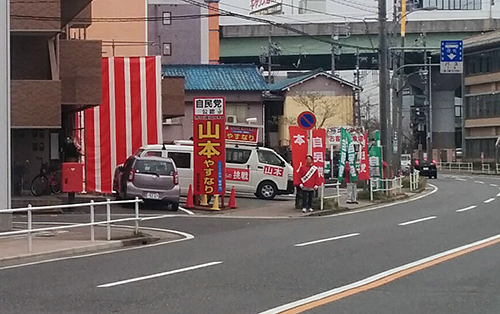 10日朝は事務所前で通勤中の皆さまへご挨拶