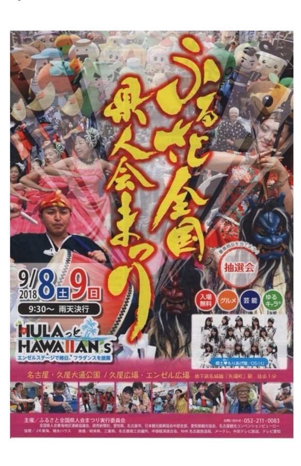 さて、幸いにも元気な名古屋では、明日&明後日、予定通り「ふるさと全国県人会まつり2018」が開催されます。