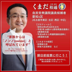 2021年10月29日 / 最終更新日時 : 2021年11月28日 anagoya_wp2 活動予定 / 報告 くまだ裕通候補も最後まで訴えます 期日前投票はいつでもできます前回の衆議院議員選挙の時の日本のトップリーダーより。皆さんお疲れ様と想像しますが、あと少し。くまだ裕通候補も最後まで訴えます 皆さまのご支援、お力添えを、何卒、よろしくお願い致します