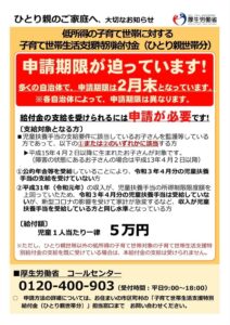 低所得の子育て世帯に対する子育て世帯生活支援特別給付金(ひとり親世帯分)