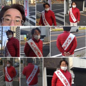 3月15日 朝のあいさつ運動。志賀本通駅。