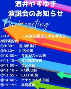2025年7月19日 / 最終更新日時 : 2025年7月19日 anagoya_wp2 活動予定 / 報告 この国に必要な政治家、酒井やすゆき 最後の最後です! この国に必要な政治家、酒井やすゆき候補を皆さんのお力添えで、押し上げてください!