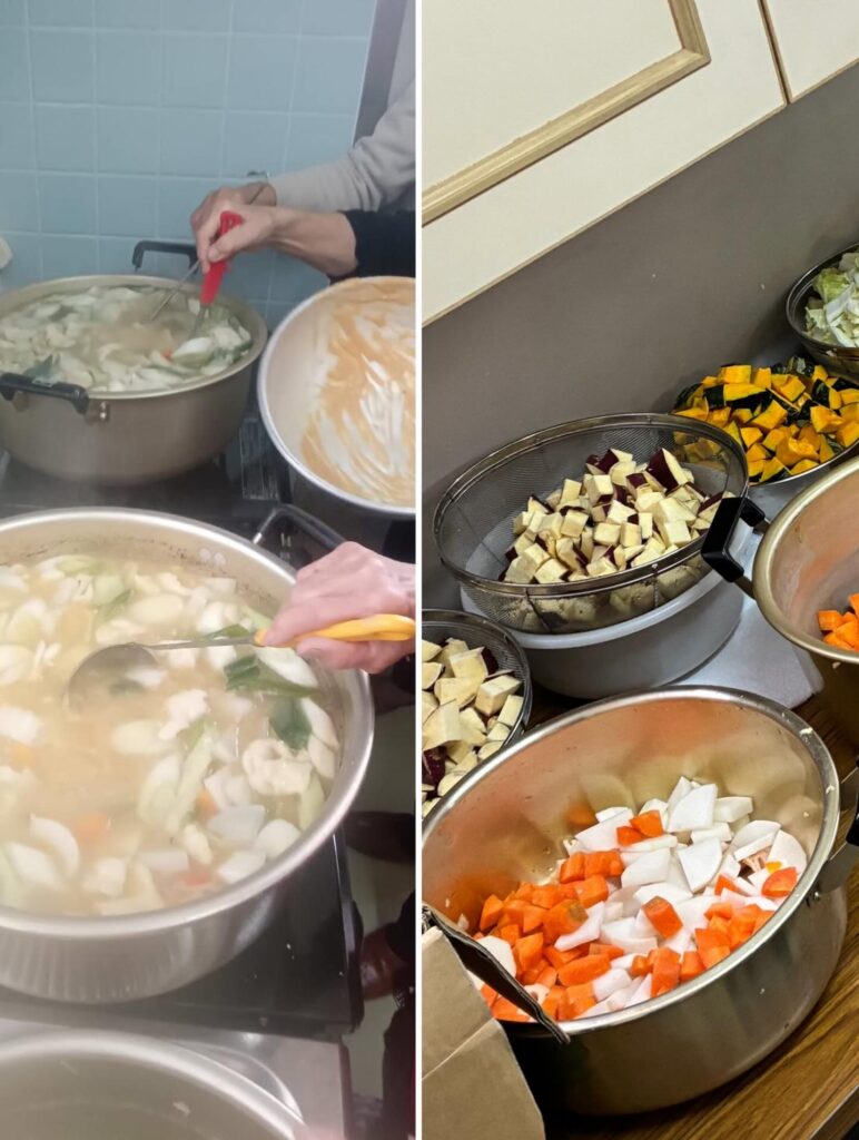 今回の年末の「すいとん汁忘年会」でも皆さん段取りが良すぎて、あっという間に60人分が出来てしまいました。