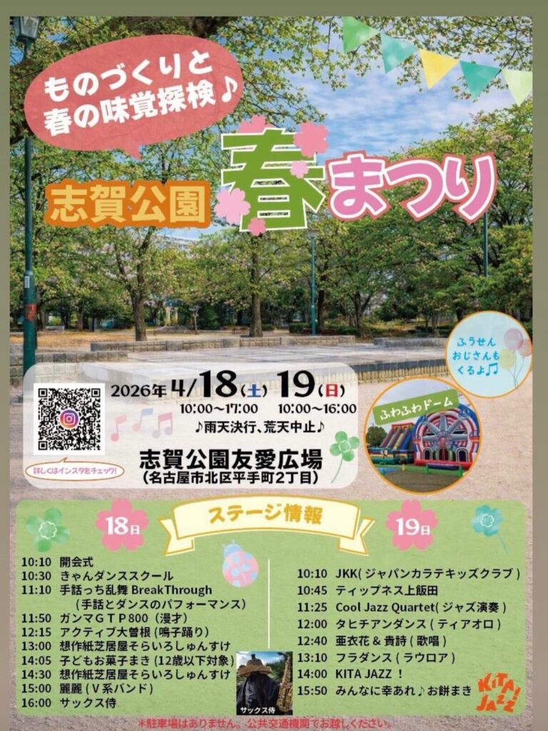 2026年4月19日 / 最終更新日時 : 2026年4月20日 anagoya_wp2 活動予定 / 報告 志賀公園春まつり 昨日&今日と、暑いくらいの気候の中、大盛りあがりの志賀公園春まつり 思わず食べ過ぎました 関係者の皆さま、本当にご苦労様でした