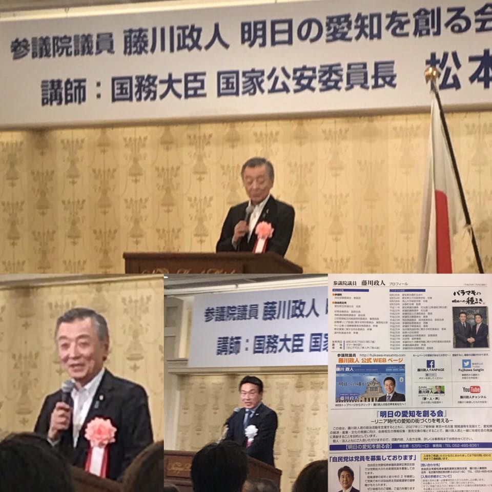 先週のことですが、自民党愛知県連会長 参議院議員 藤川政人 先生の後援会にて、