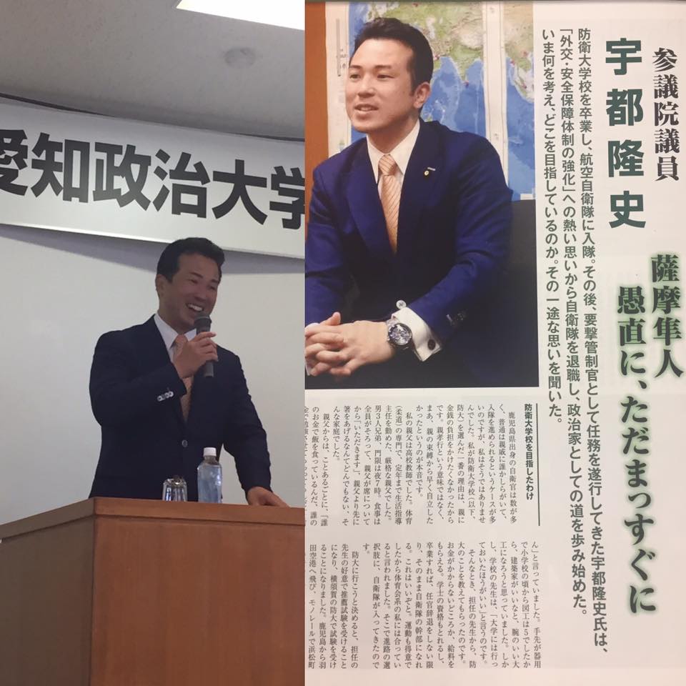 先日の事ですが、参議院議員 宇都隆史先生の講義を受講しました。