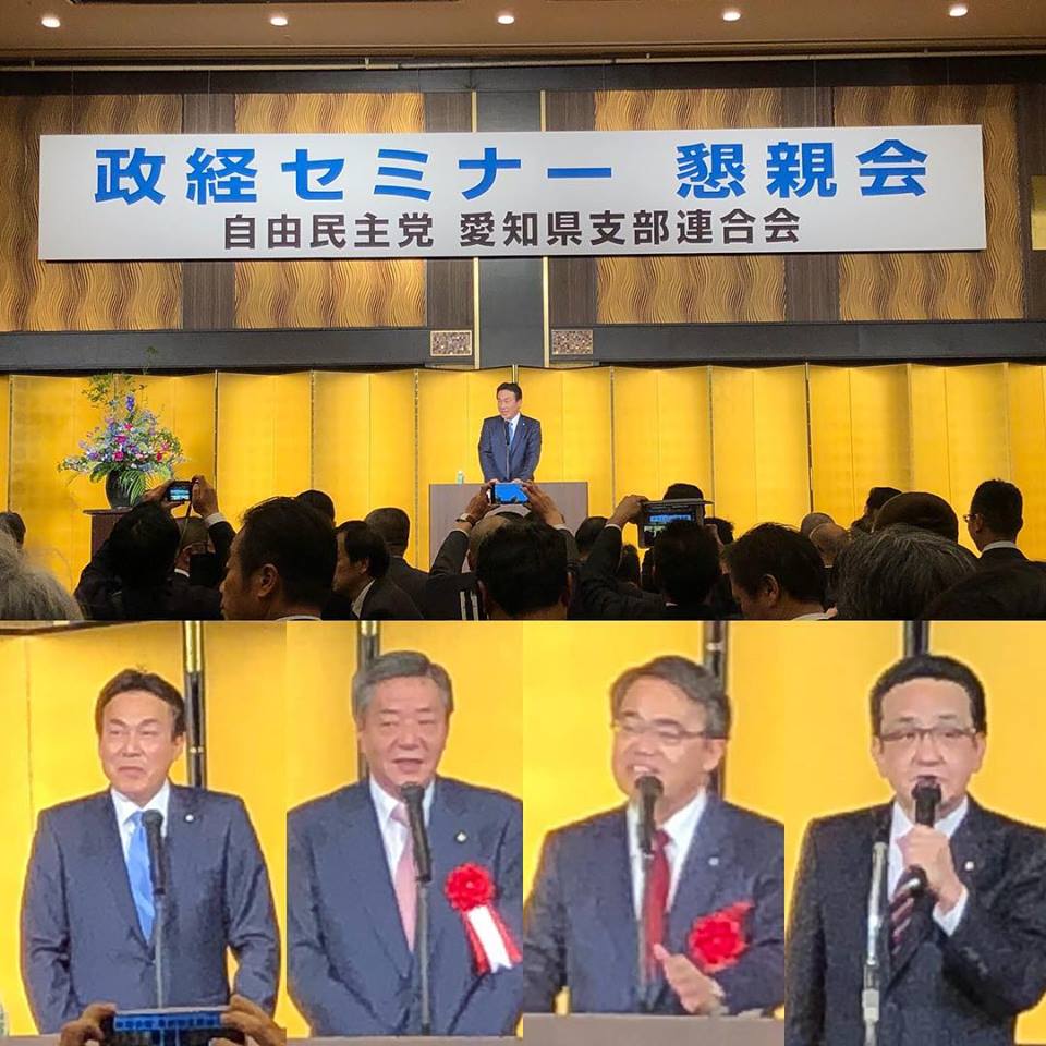 2017年11月30日 / 最終更新日時 : 2017年11月30日 anagoya_wp2 活動予定 / 報告 政経セミナー 自由民主党愛知県支部連合会主催の政経セミナーが開催されました。 藤川県連会長より、愛知12区で苦杯をなめた青山周平先生の捲土重来を期す話がありました。